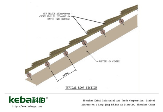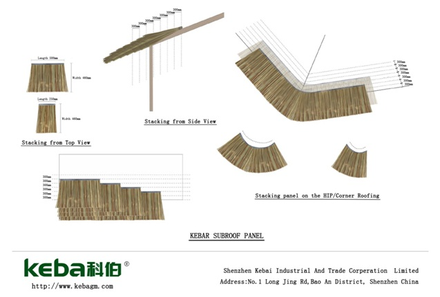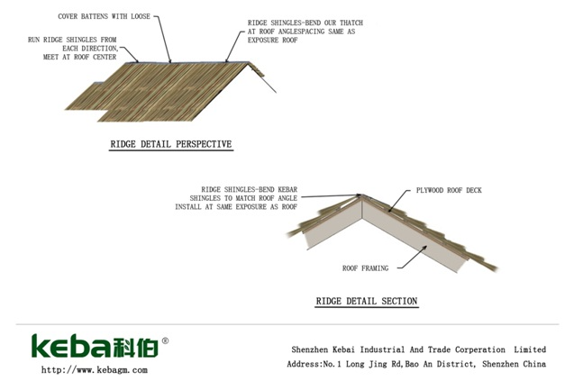 3) ? ?仿真茅草瓦雖有一定的防雨水作用(重疊較厚時),但擋雨水并不是它的主要功能,建議安裝前屋頂做好專業(yè)的防水層;