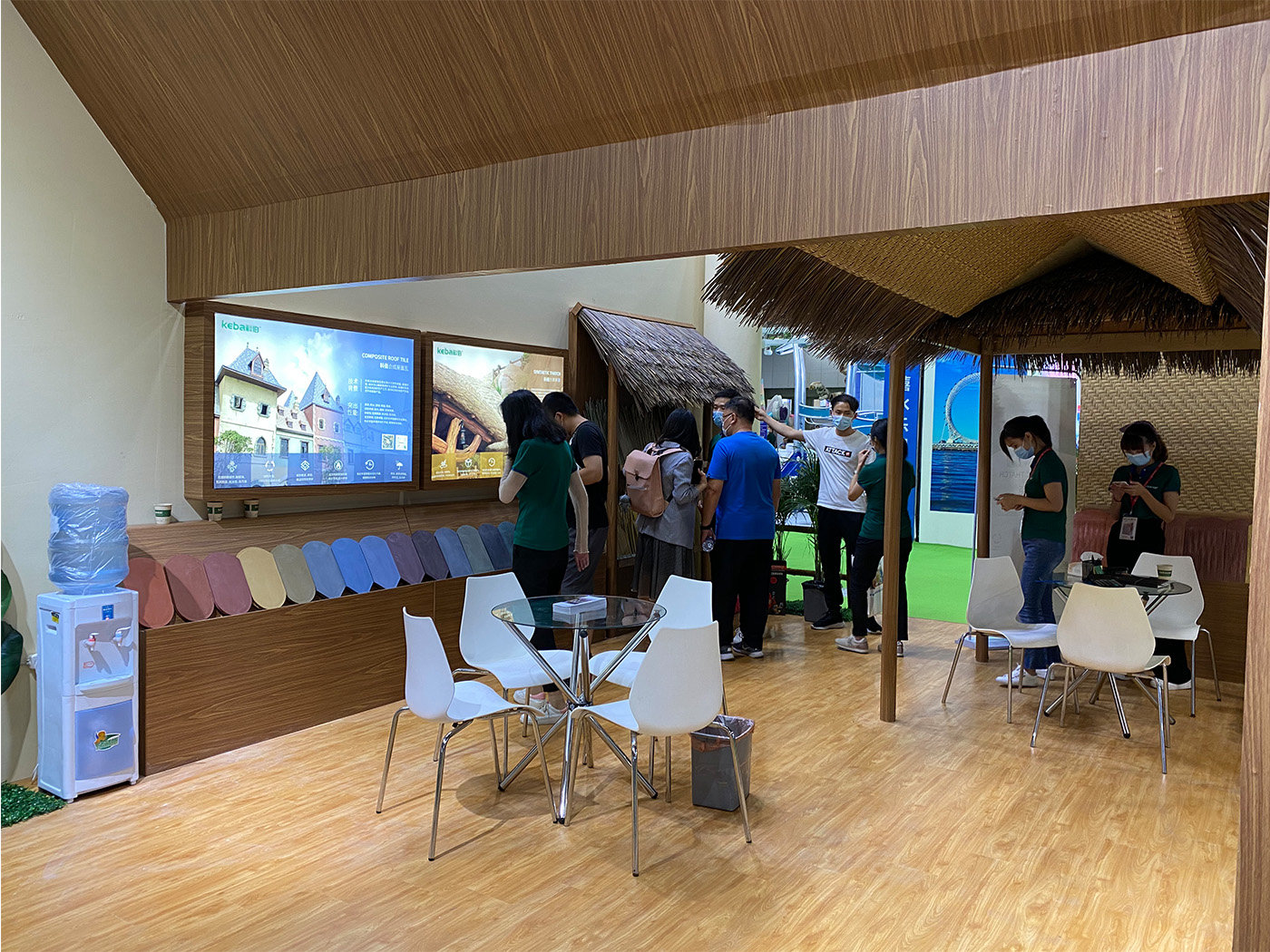 ? ? ? ? 在2020年廣州亞洲樂(lè)園及景點(diǎn)博覽會(huì)開(kāi)展以來(lái),我們秉承客戶至上的原則,一切以站在客戶的角度去理解,感受,服務(wù)等,為了客戶能夠更好的了解到合成屋面瓦、仿真茅草、青磚青瓦等產(chǎn)品,深圳市科佰工貿(mào)有限公司在展會(huì)位準(zhǔn)備了木屋,并在上面鋪設(shè)合成屋面瓦和仿真茅草亭子,以方便客戶更好理解,去真實(shí)體驗(yàn)合成屋面瓦、仿真茅草、青磚青瓦等不同產(chǎn)品用于屋頂上的各種美觀效果;同樣準(zhǔn)備的多種新款式合成屋面瓦、青磚青瓦、仿真茅草等產(chǎn)品也深受客戶的喜愛(ài),充分體現(xiàn)客戶在展會(huì)上對(duì)我們產(chǎn)品的認(rèn)可。