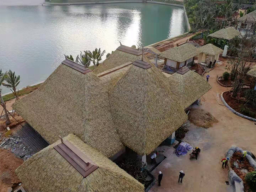 ? ? ? ?人造茅草柔中帶韌的質(zhì)感頗有不羈、灑脫的魅力,而其紋理設(shè)計(jì)是仿制真茅草特有的,飄逸又自由營造出一種自然又藝術(shù)的空間氛圍。屋面是景區(qū)或家居的“門面”,人造茅草更是現(xiàn)代風(fēng)格下的屋面主流熱門建筑材料,讓景區(qū)存在一種國際潮流范,更是在忙碌生活之余擁有舒適的空間。