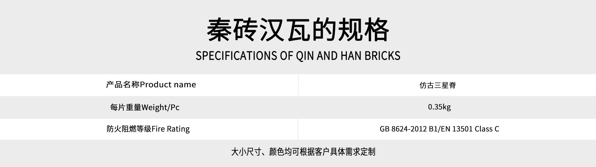 ? ? ? ? ?深圳市科佰工貿(mào)有限公司為弘揚(yáng)中華民族傳統(tǒng)文化增磚添瓦,新研發(fā)一套仿古園林建筑材料秦磚漢瓦,產(chǎn)品配件包括:青磚、勾頭(筒頭)、滴水、花邊瓦、筒瓦、板瓦、脊瓦、擋勾、元頭等以及各種定制古建配件;同時我公司常年承攬各種大中小型古建工程,包括:四合院、廟宇、亭臺樓閣、景區(qū)工程,古建群落等,為客戶提供古建主體工程設(shè)計、施工、材料以及維護(hù)全程跟蹤服務(wù)!