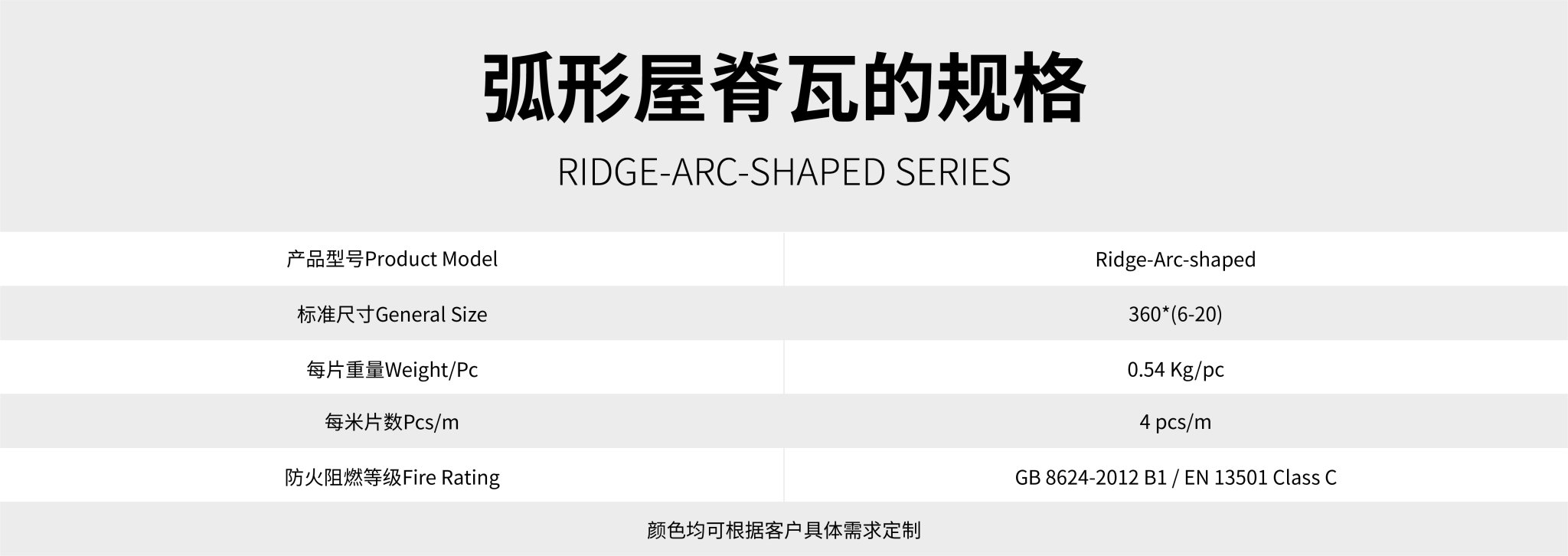 弧形屋脊瓦在自然環(huán)境中具有更佳尋常的耐久性,它即使長期暴露于紫外線、強光、潮濕、寒熱等惡劣環(huán)境下,仍能保持其顏色和物理性能的穩(wěn)定性。經(jīng)試驗檢測證明,可以確保15年△E值小于5。合成屋面瓦通過了12000小時的人工老化測試,檢測結果△E=3.86。(根據(jù)太陽照射量和年日照時間,12000小時檢測試驗相當于自然使用45年,遇冷不脆、遇熱不軟,長期使用環(huán)境溫度-40℃至200℃,與鋼鐵熱膨脹系數(shù)基本一致,使因溫差產(chǎn)生的位移基本相等。